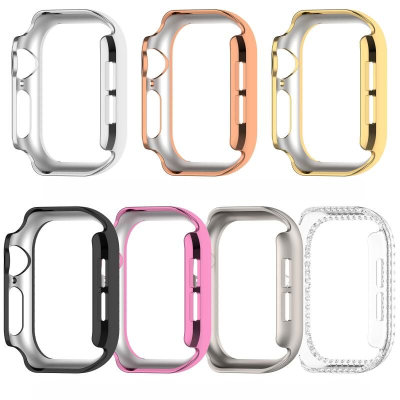 For Apple Watch Series 10 46mm Single-Row Diamond Plated PC Hollow Watch Case(Pink)