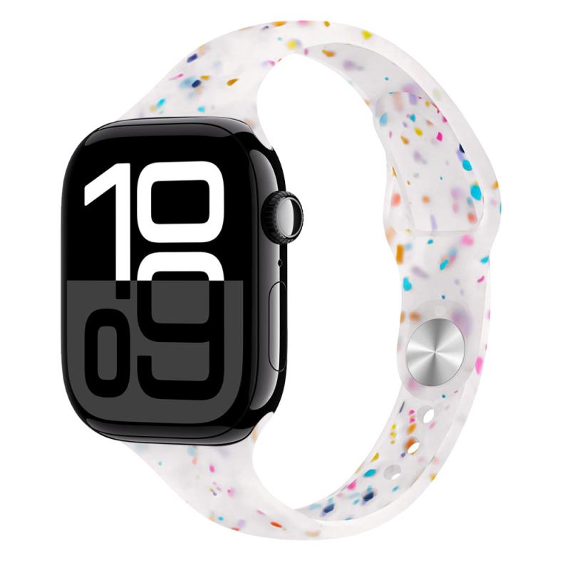 Λουράκι ρολογιού σιλικόνης με πολύχρωμες κουκκίδες, λεπτό στυλ για Apple Watch Series 10 46mm (Ροζ)