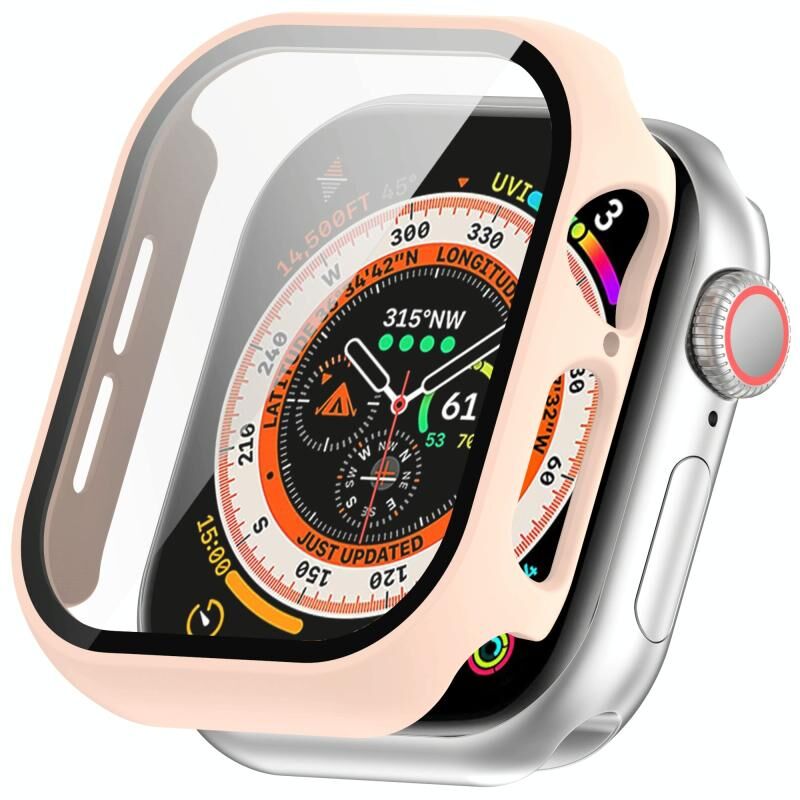 For Apple Watch Series 10 46mm Tempered Glass Film Integrated PC Watch Case(Pink)