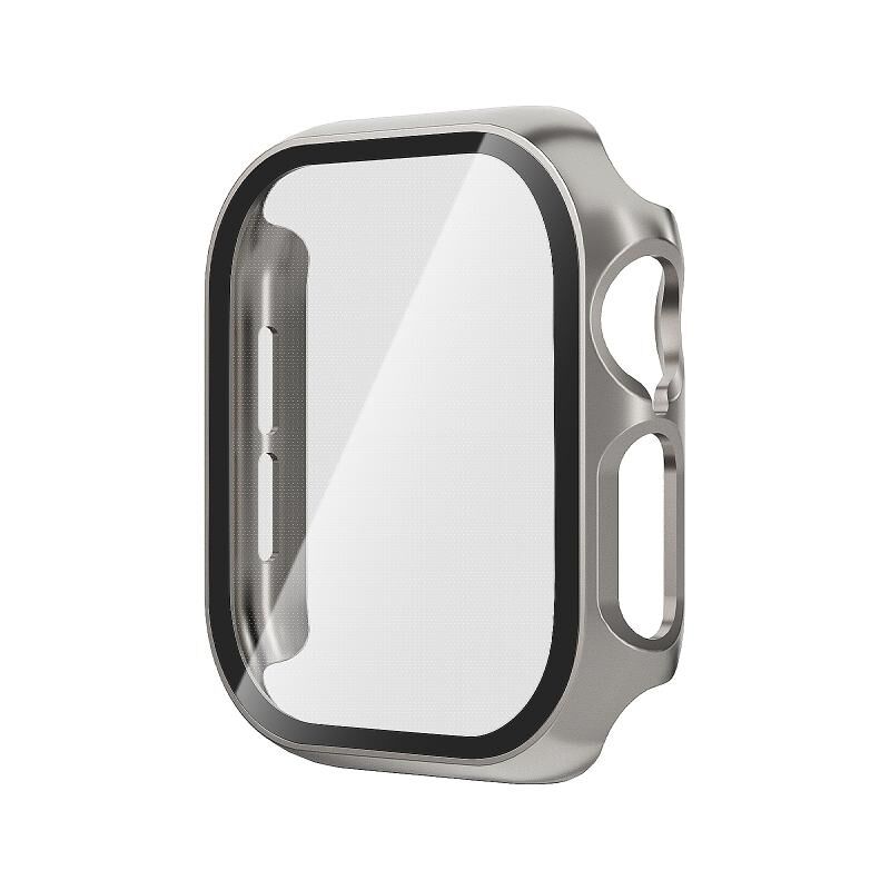 For Apple Watch Series 10 46mm Tempered Glass Film Integrated PC Watch Case(Titanium Grey)