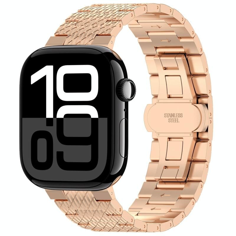 For Apple Watch Series 10 46mm Twill Stainless Steel Watch Band(Rose Gold)
