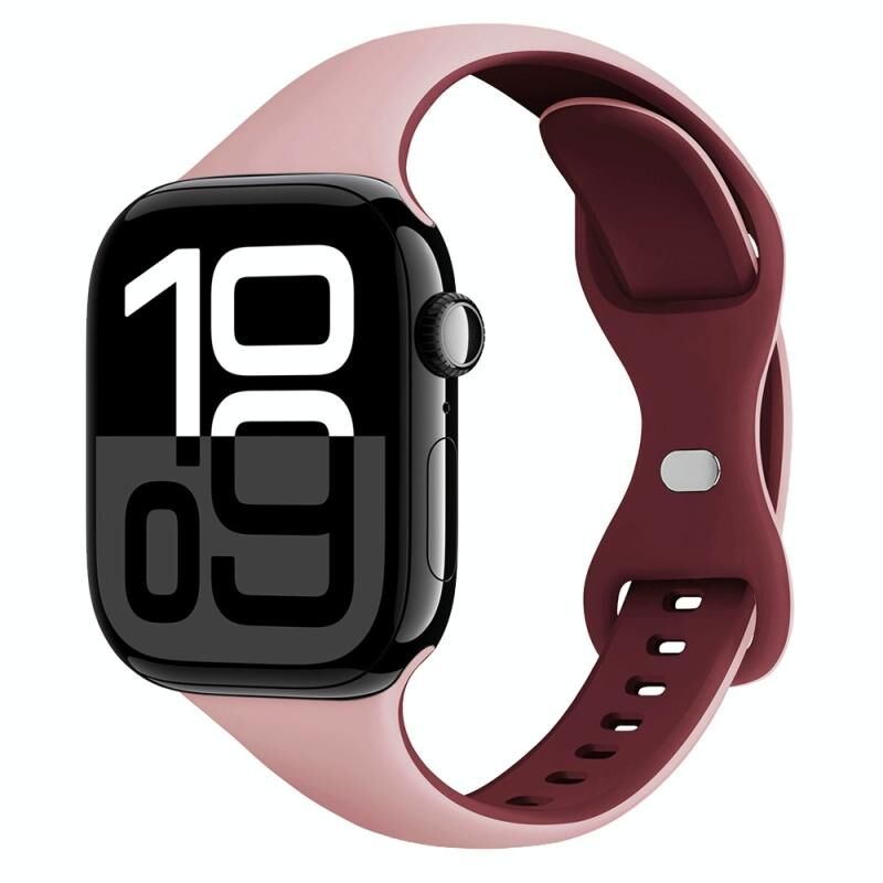 Για Apple Watch Series 10 46mm Δερμάτινο Λουράκι Σιλικόνης με Λεπτή Αγκράφα Πεταλούδας σε Δύο Χρώματα (Ροζ Κρασί-Κόκκινο)