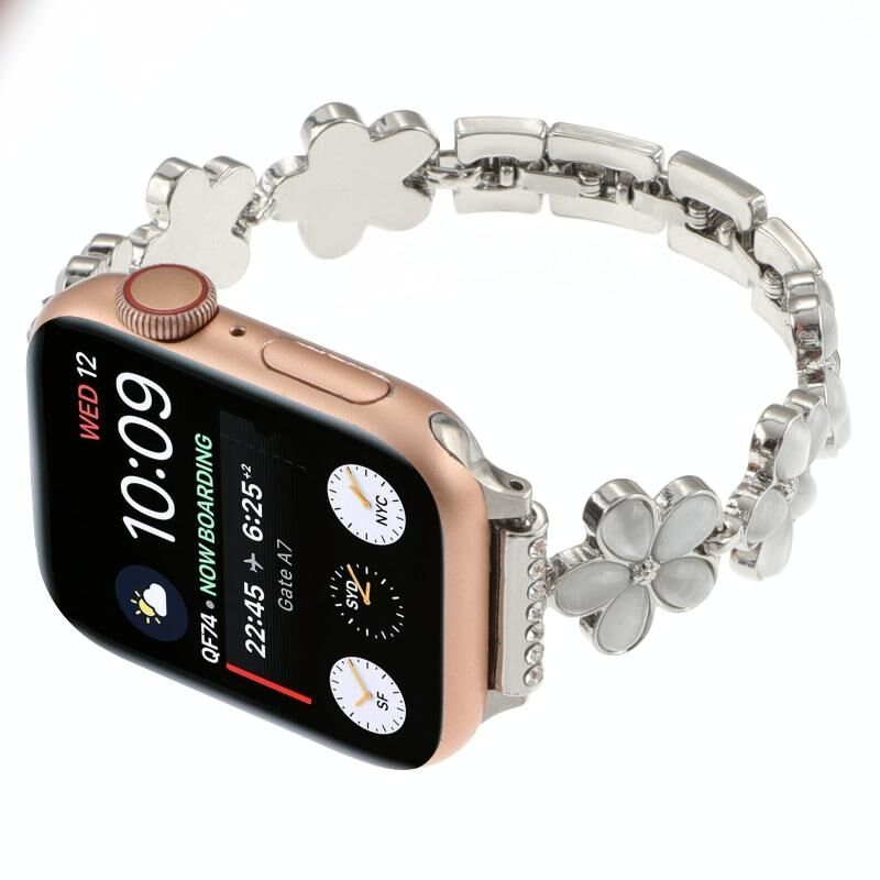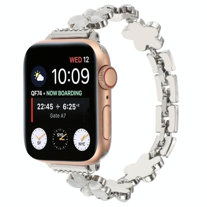 Για Apple Watch Series 2 38mm, αλυσίδα ρολογιού από κράμα ψευδαργύρου με λουλούδι 5 πετάλων (Ασημί)