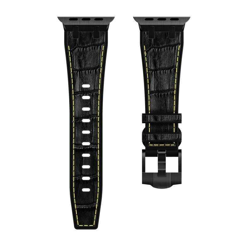 Για Apple Watch Series 2 38mm Λουρί Σιλικόνης Υγρού με Υφή Κροκόδειλου (Μαύρο Κίτρινο Μαύρο)