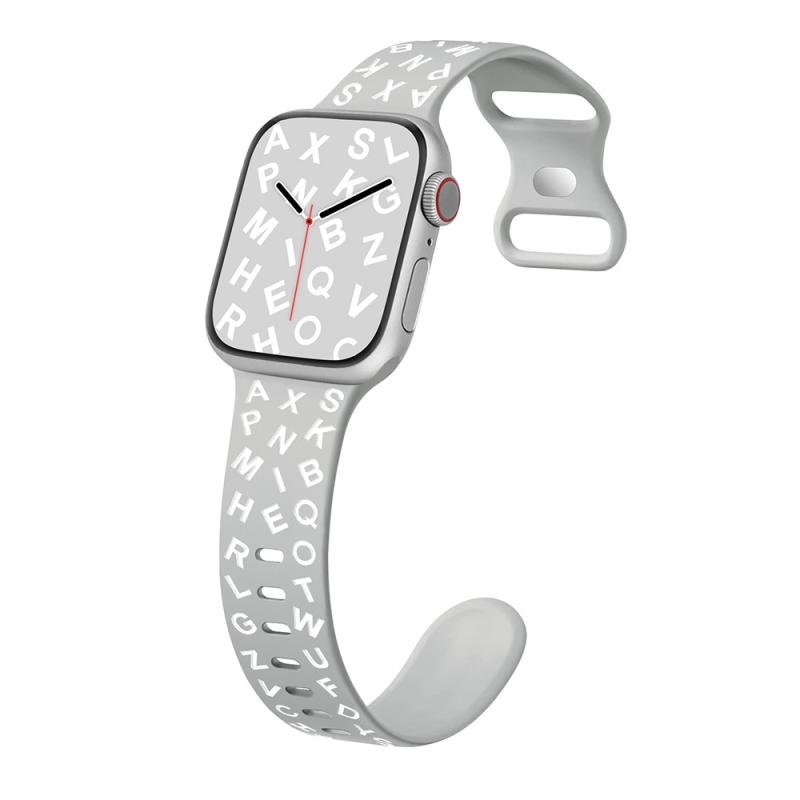 For Apple Watch Series 2 38mm English Letters Style Butterfly Buckle Silicone Watch Band(Grey White)