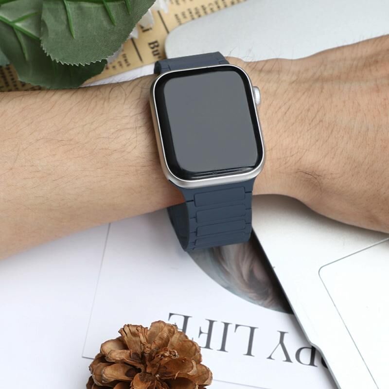 Για Apple Watch Series 2 38mm Μαγνητικό Λουρί Σιλικόνης (Σκούρο μπλε μαύρο)