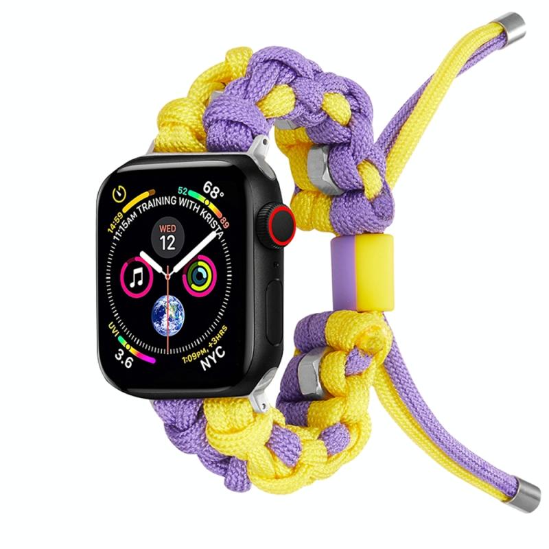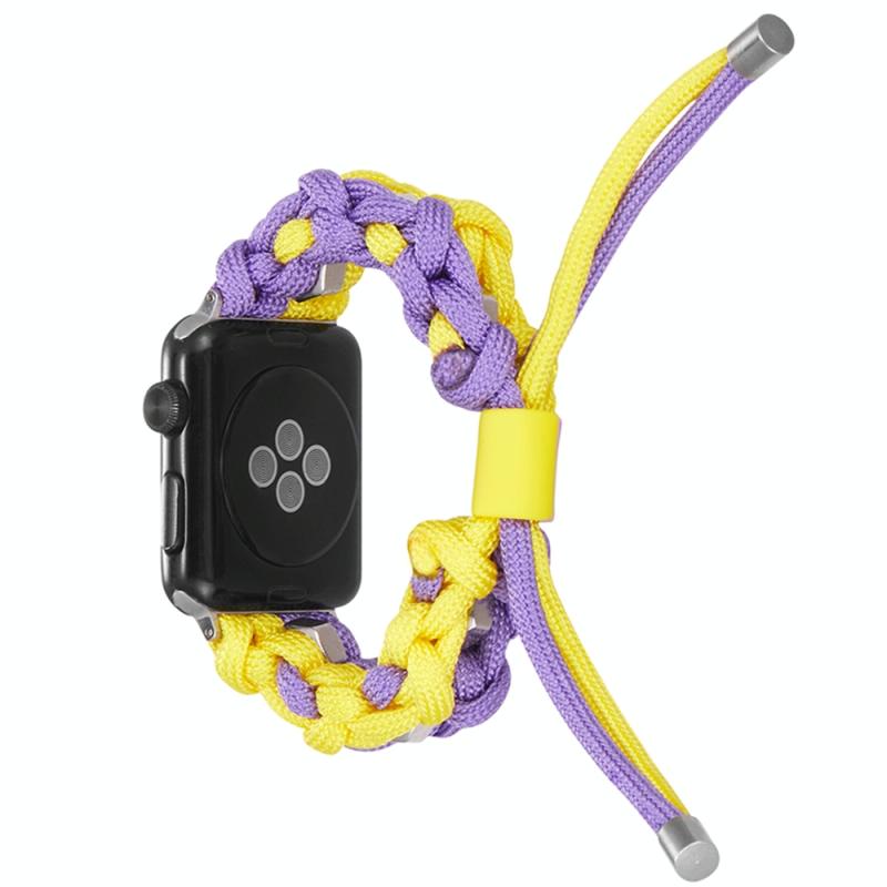 For Apple Watch Series 2 38mm Screw Nut Dual-Color Braided Paracord Watch Band(Purple Yellow)