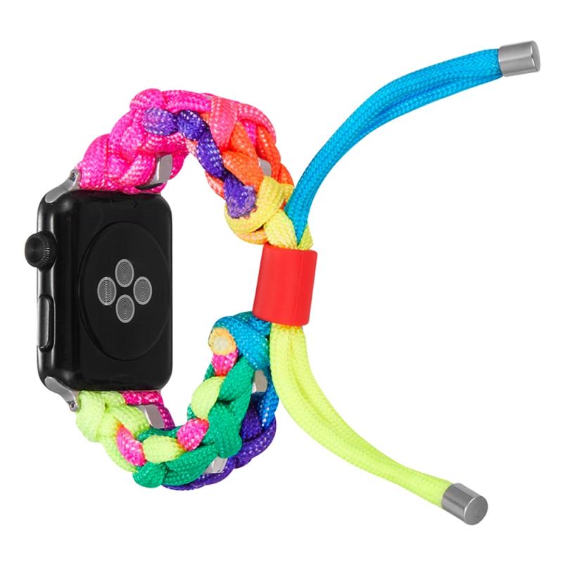 For Apple Watch Series 2 38mm Screw Nut Dual-Color Braided Paracord Watch Band(Rainbow)