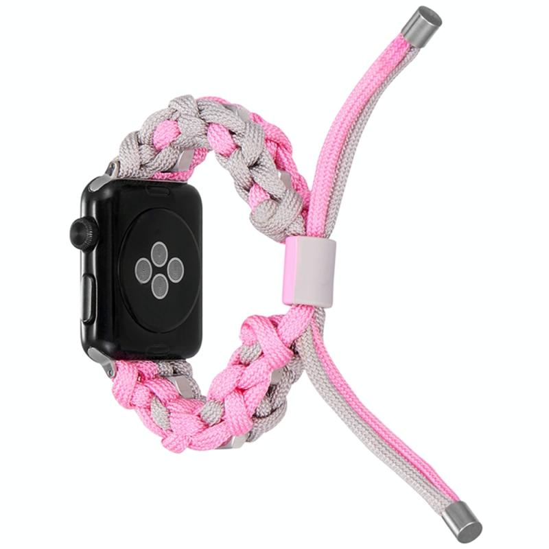 For Apple Watch Series 2 38mm Screw Nut Dual-Color Braided Paracord Watch Band(Silver Pink)