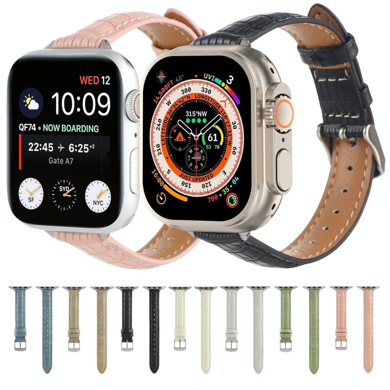 Για Apple Watch Series 2 38mm Λεπτό Δερμάτινο Λουρί Κροκόδειλου (Ροζ)