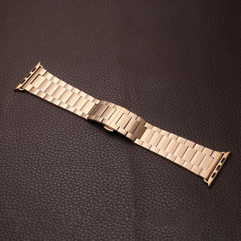 Για Apple Watch Series 2 38mm Μεταλλικό Μπρασελέ Τριών Σφαιρών με Κούμπωμα Πεταλούδας (Ροζ χρυσός)