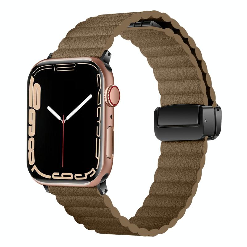 For Apple Watch Series 2 38mm Water Ripple Magnetic Folding Buckle Watch Band, Style: Bold Version(Brown)