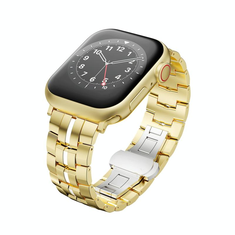 For Apple Watch Series 2 42mm Butterfly Buckle 5-Beads Metal Watch Band(Gold White)