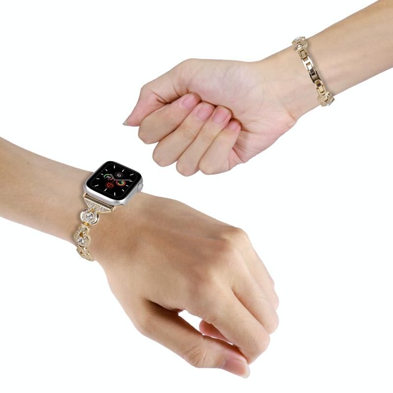 For Apple Watch Series 2 42mm Gourd Diamond Metal Watch Band(Gold)