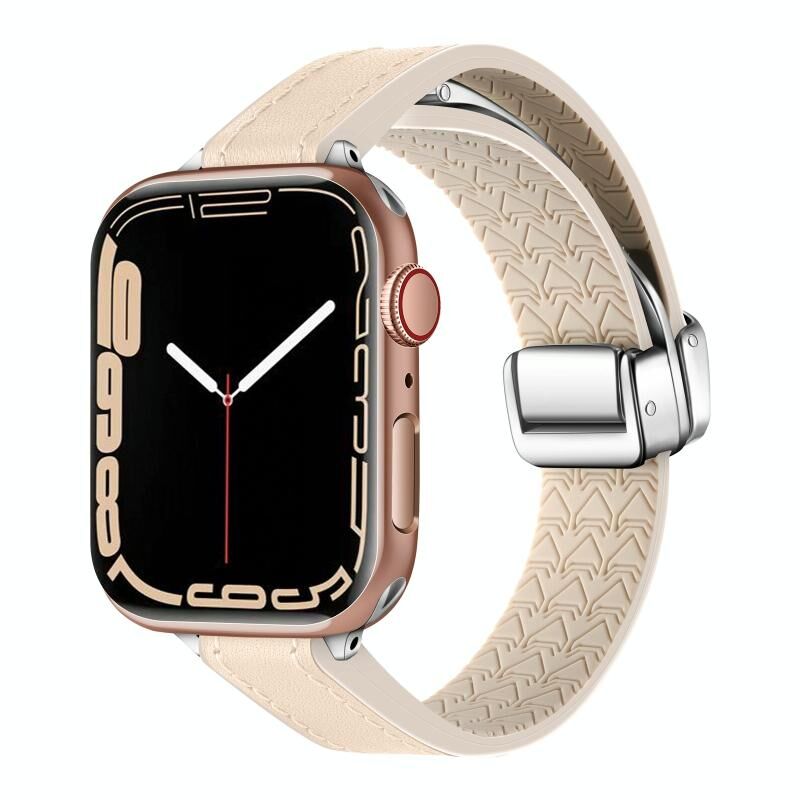 For Apple Watch Series 2 42mm Magnetic Folding Leather Silicone Watch Band(Apricot)