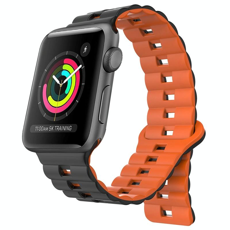Για Apple Watch Series 2 42mm, Λουρί Σιλικόνης με Μαγνητικό Κούμπωμα Αντίστροφης Πόρπης, Δύο Χρωμάτων (Μπλε της Νύχτας + Πορτοκαλί)