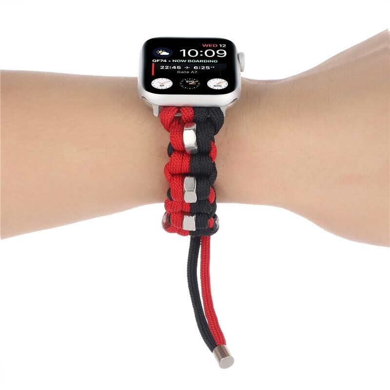 For Apple Watch Series 2 42mm Screw Nut Dual-Color Braided Paracord Watch Band(Black Red)