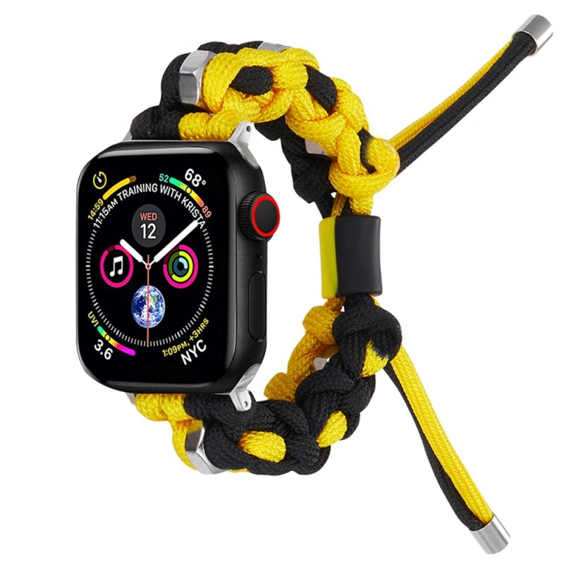 For Apple Watch Series 2 42mm Screw Nut Dual-Color Braided Paracord Watch Band(Black Yellow)