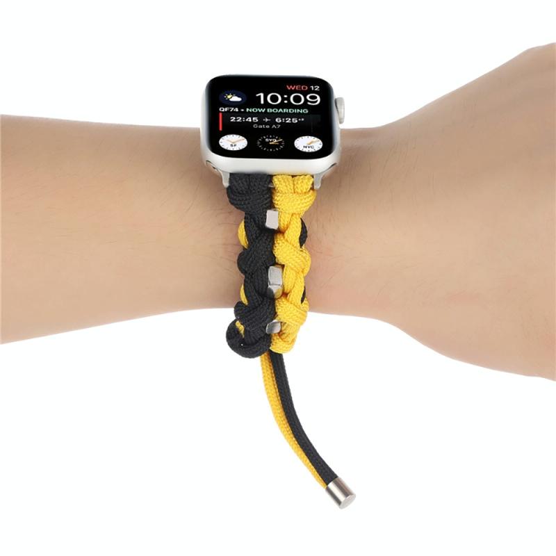 For Apple Watch Series 2 42mm Screw Nut Dual-Color Braided Paracord Watch Band(Purple Yellow)