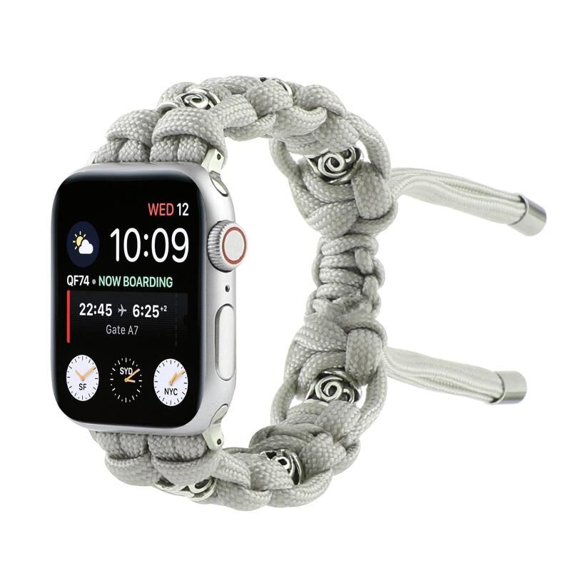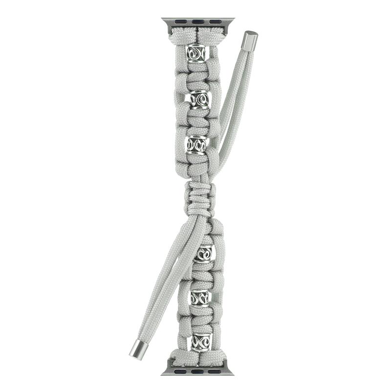 For Apple Watch Series 2 42mm Silk Silver Beads Braided Watch Band(Grey)