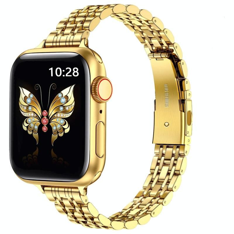 For Apple Watch Series 2 42mm Slim Seven Bead Slingshot Buckle Metal Watch Band(Gold)