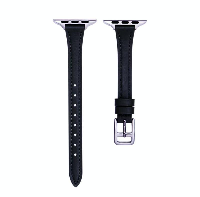 For Apple Watch Series 2 42mm T-shaped Slim Genuine Leather Watch Band(Black)