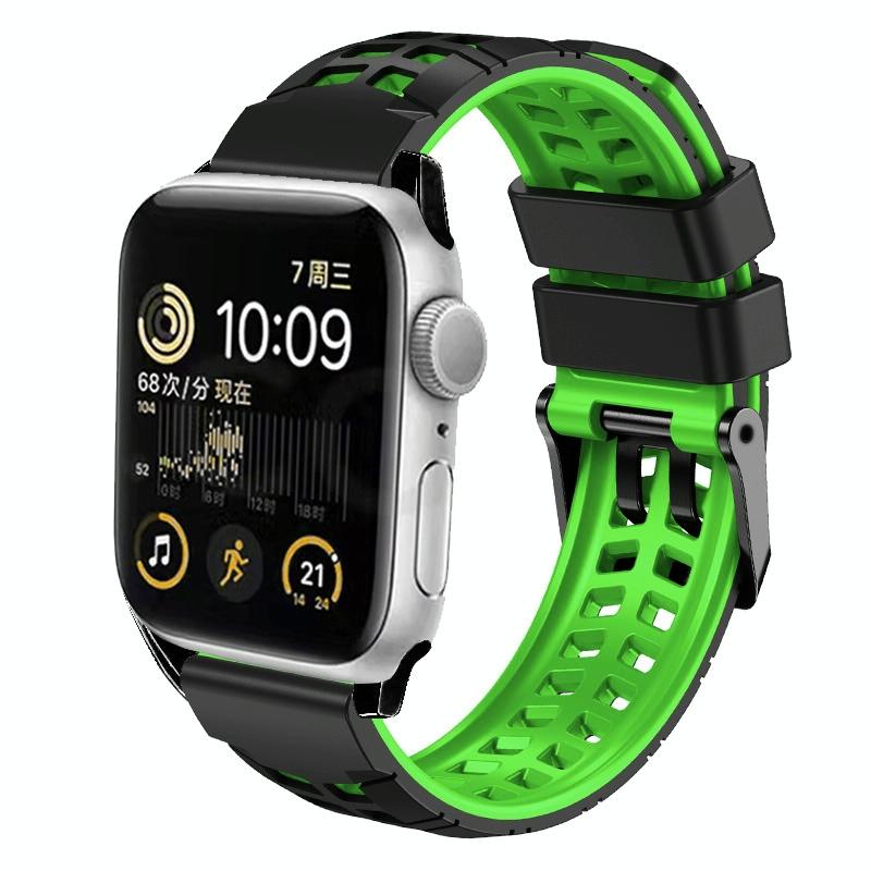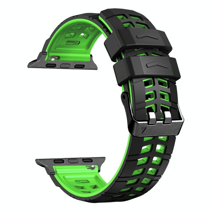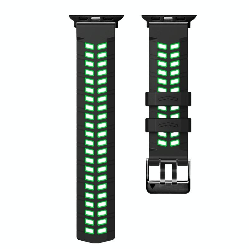 For Apple Watch Series 2 42mm Twill Dual-row Buckle Silicone Watch Band(Black Green)