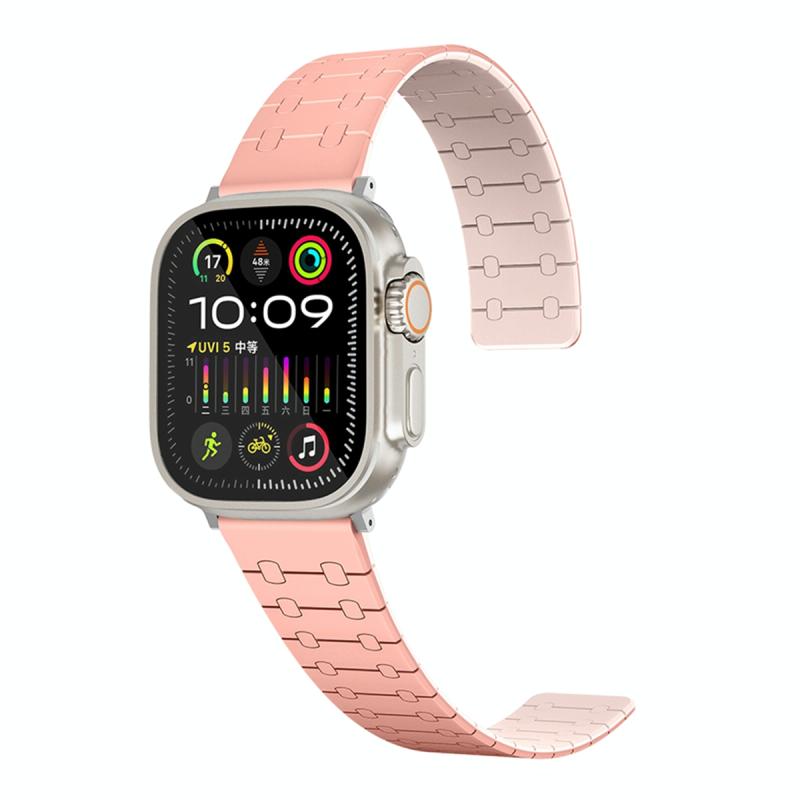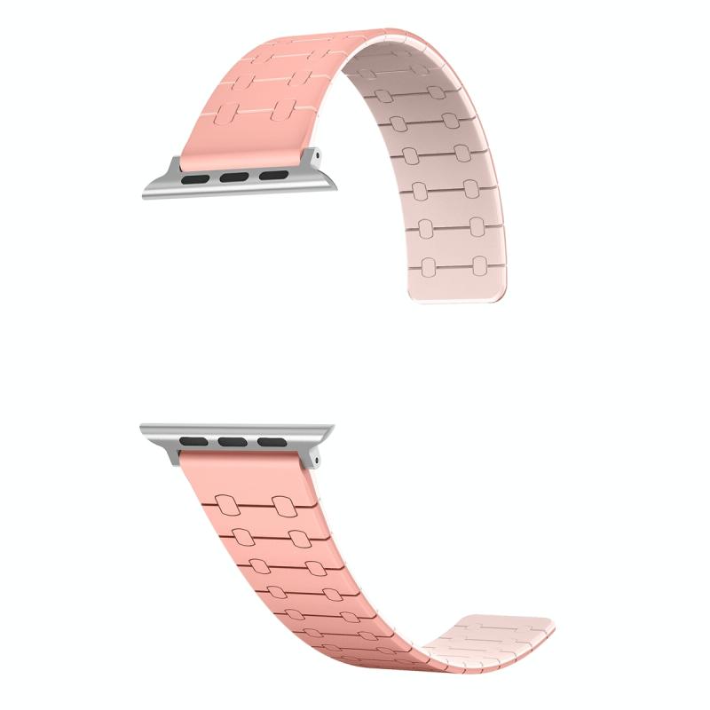 For Apple Watch Series 2 42mm Two Color Loop Magnetic Silicone Watch Band(Peach+Light Pink)
