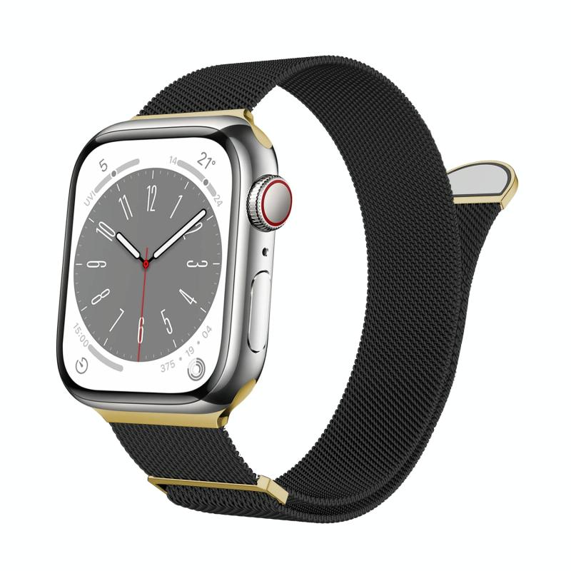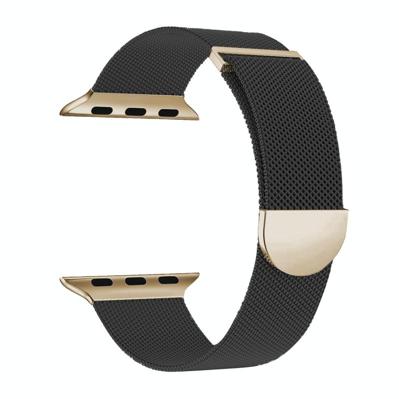 For Apple Watch Series 2 42mm Two Color Milanese Loop Magnetic Watch Band(Black Gold)