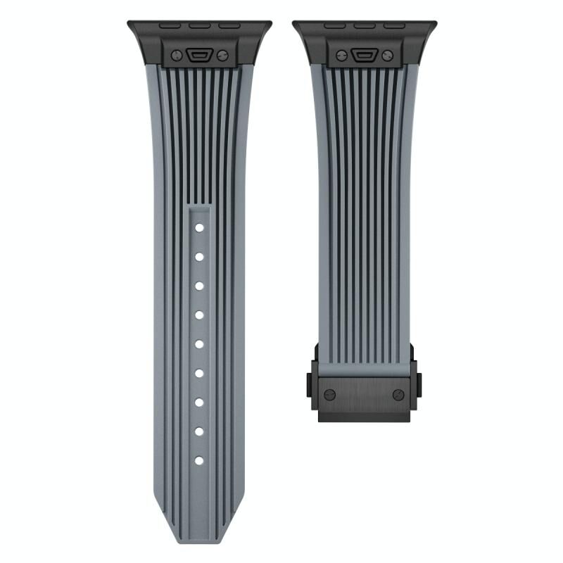 For Apple Watch Series 2 42mm Vertical Texture Black Buckle Elastic Silicone Watch Band(Grey)