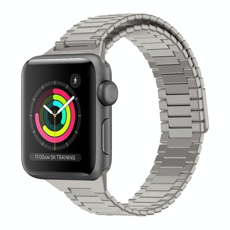 For Apple Watch Series 3 38mm Bamboo Magnetic Stainless Steel Metal Watch Strap(Titanium Color)