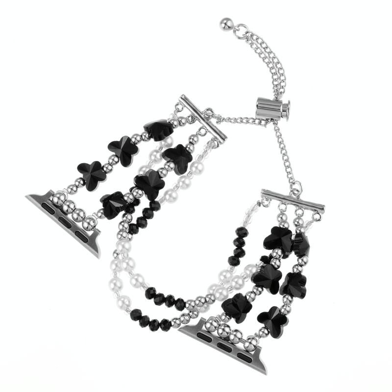 Για Apple Watch Series 3 38mm Βραχιόλι αλυσίδας πεταλούδας από μέταλλο (Μαύρο)