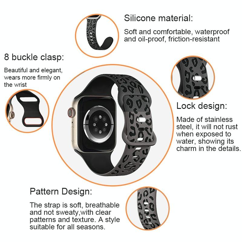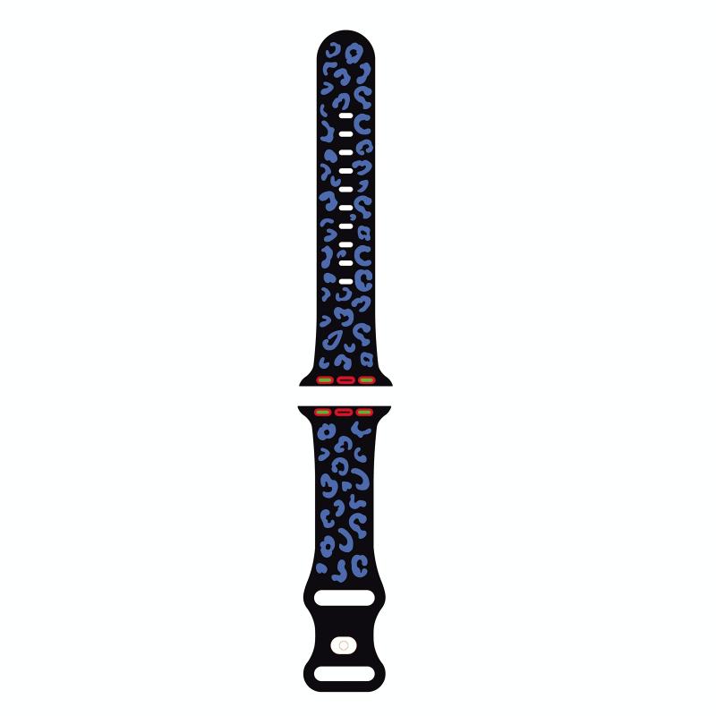 Για Apple Watch Series 3 38mm Κυρτό Λουρί Σιλικόνης με Εκτύπωση Λεοπάρδαλης (Μαύρο μπλε)