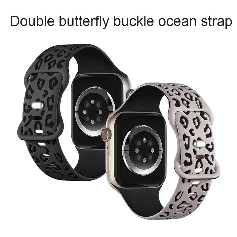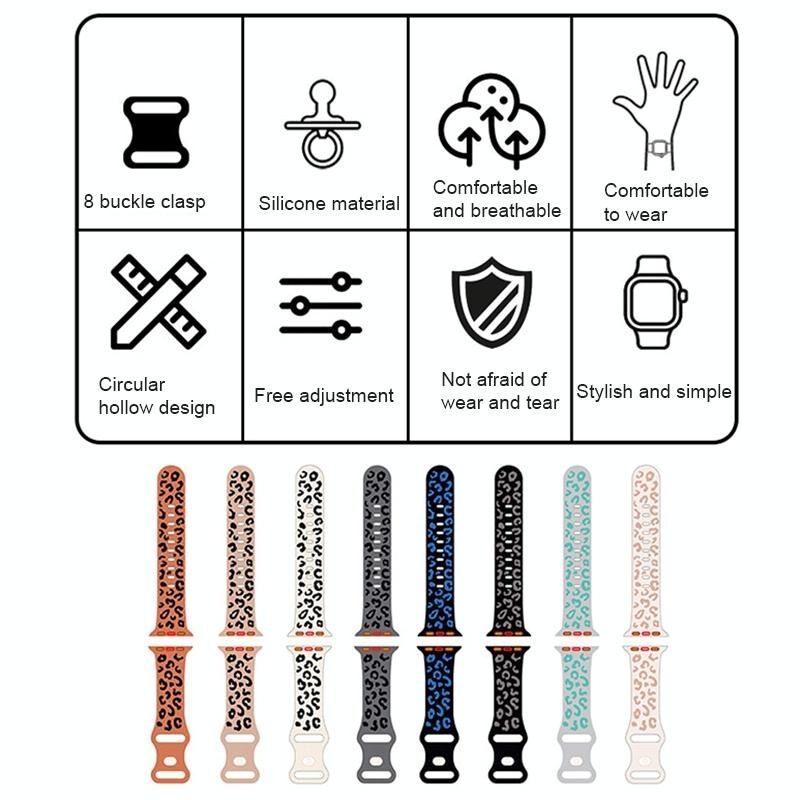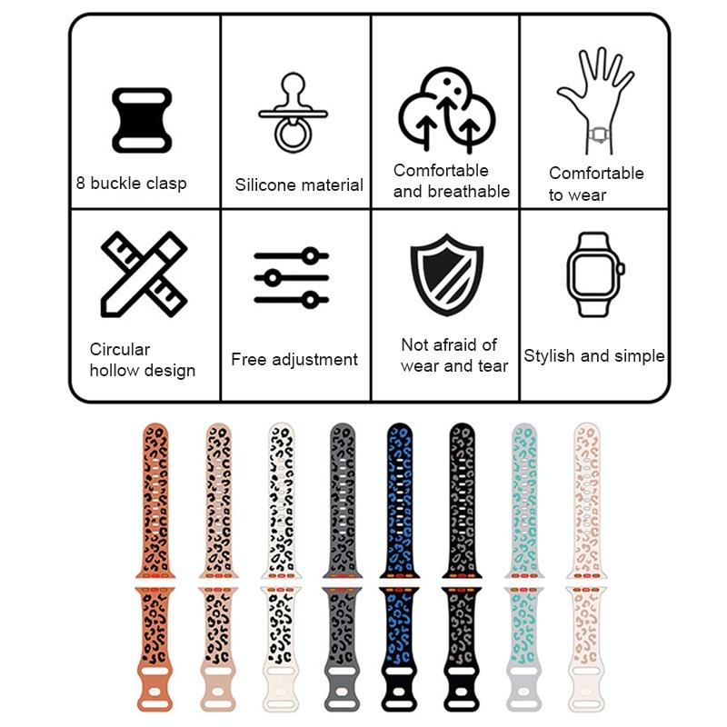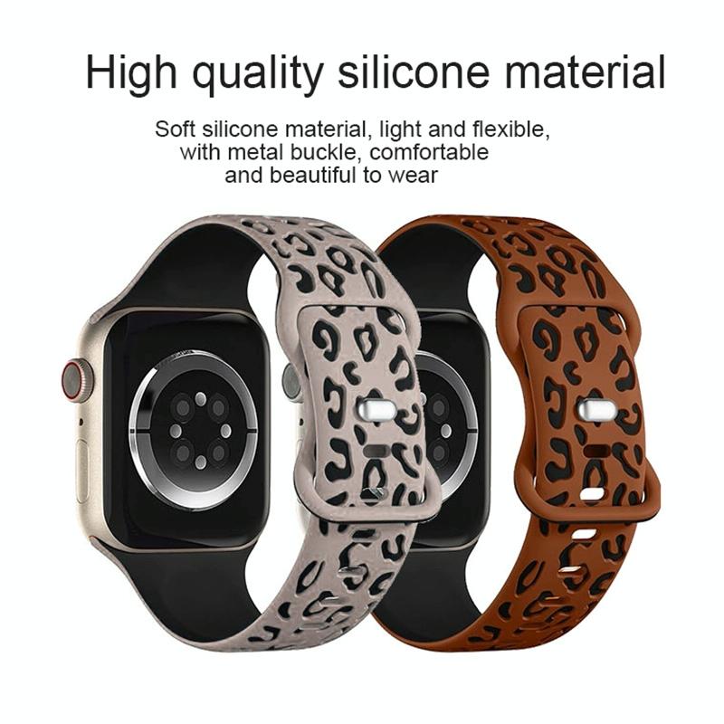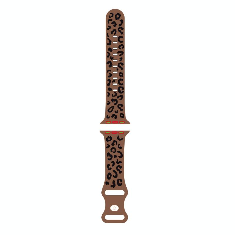 Για Apple Watch Series 3 38mm Κυρτό Λουρί Σιλικόνης με Εκτύπωση Λεοπάρδαλης (Καφέ-μαύρο)