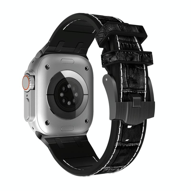 Για Apple Watch Series 3 38mm Λουρί Σιλικόνης Υγρού με Υφή Κροκόδειλου (Μαύρο Λευκό Μαύρο)
