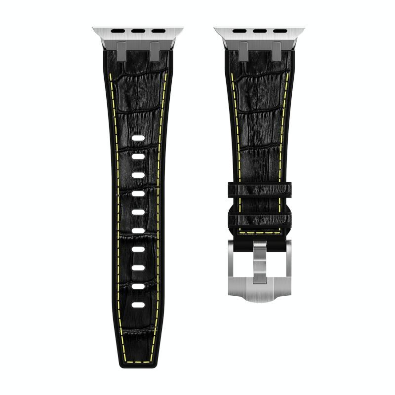 Για Apple Watch Series 3 38mm Λουρί Σιλικόνης Υγρού με Υφή Κροκόδειλου (Μαύρο Λευκό Μαύρο)