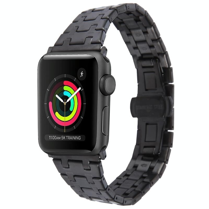 Για Apple Watch Series 3 38mm Διπλό λουρί ρολογιού από ανοξείδωτο ατσάλι (Μαύρο)