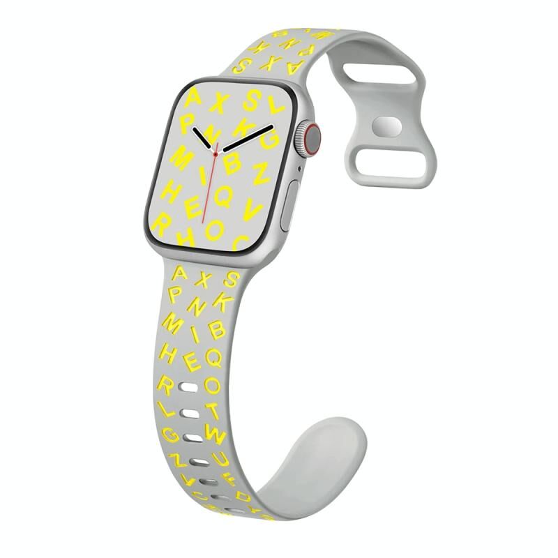 Για Apple Watch Series 3 38mm Λουράκι Σιλικόνης με Αγκράφα Πεταλούδας σε Αγγλικά Γράμματα (Γκρι Κίτρινο)