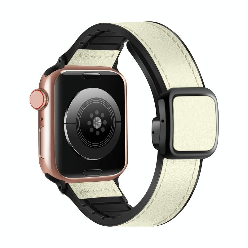 Για Apple Watch Series 3 38mm Λουράκι Μαγνητικό PU-Σιλικόνης (Μπεζ)