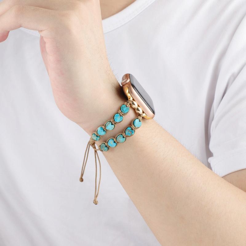 Για Apple Watch Series 3 38mm Λουράκι ρολογιού με κορδόνι περίσφιξης Heart Stones (Λευκό Καφέ)