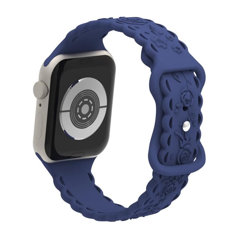 Για Apple Watch Series 3 38mm Δαντέλα 3D Ροζ Χαραγμένο Λουράκι Σιλικόνης (Ναυτικό μπλε)