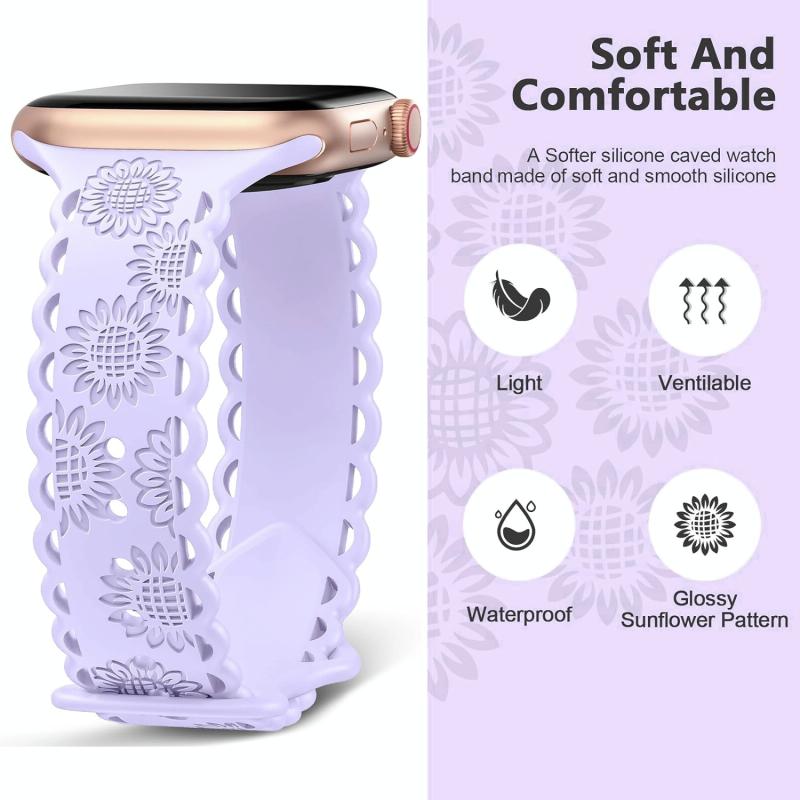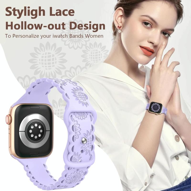 Για Apple Watch Series 3 38mm Δερμάτινο Λουρί Σιλικόνης με Δαντέλα και Χαραγμένο Ηλιοτρόπιο (Μαύρο)