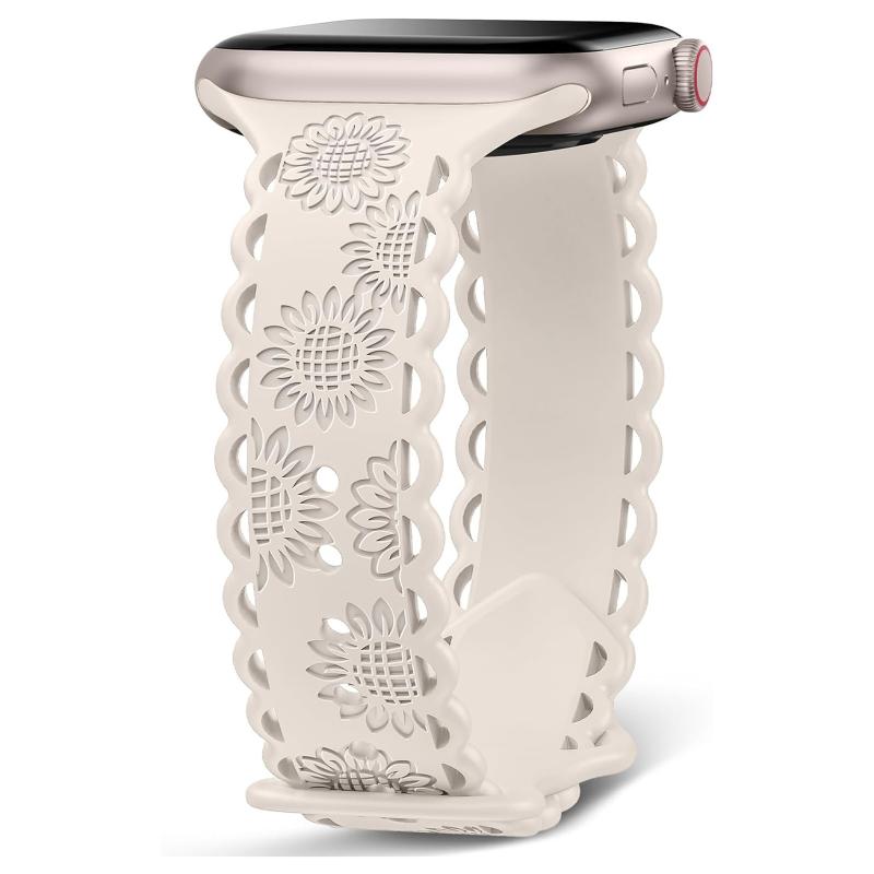 Για Apple Watch Series 3 38mm Δερμάτινο Λουρί Σιλικόνης με Δαντέλα και Χαραγμένο Ηλιάνθιο (Starlight)