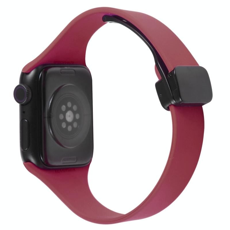 For Apple Watch Series 3 38mm Magnetic Buckle Slim Silicone Watch Band(Wine Red)