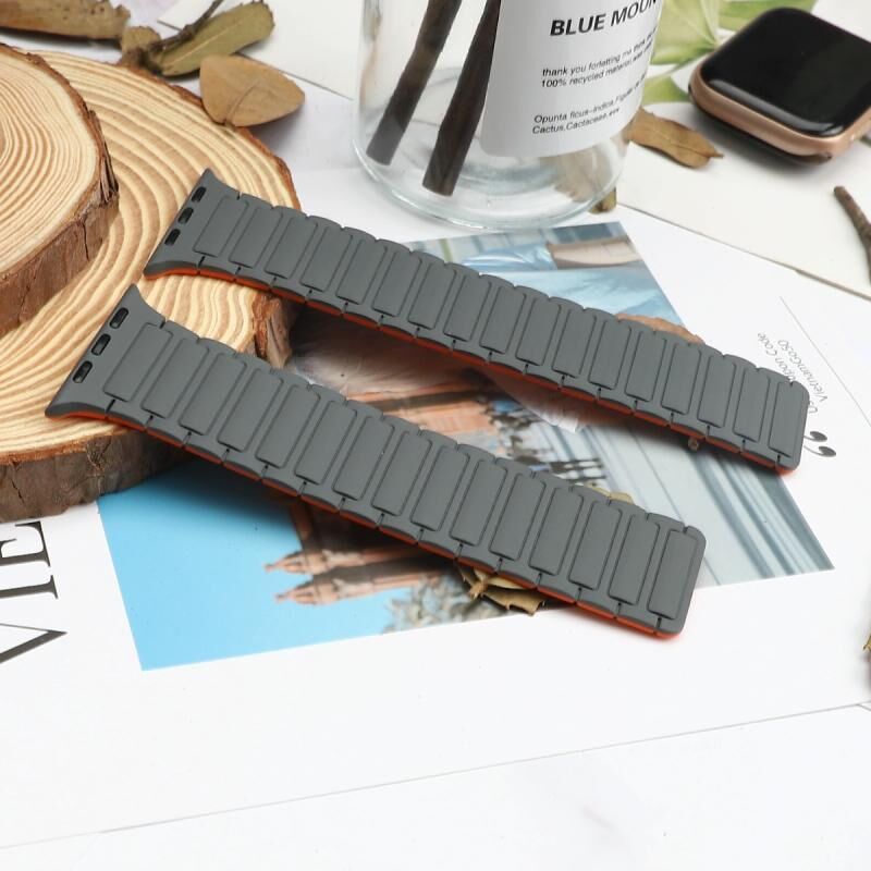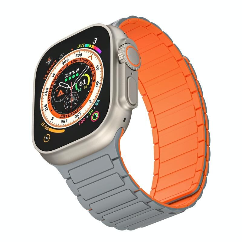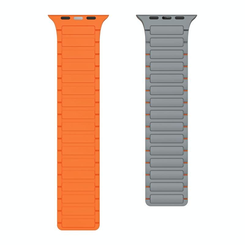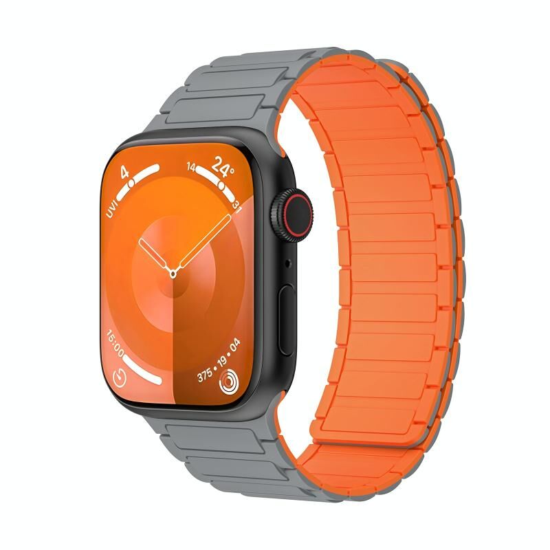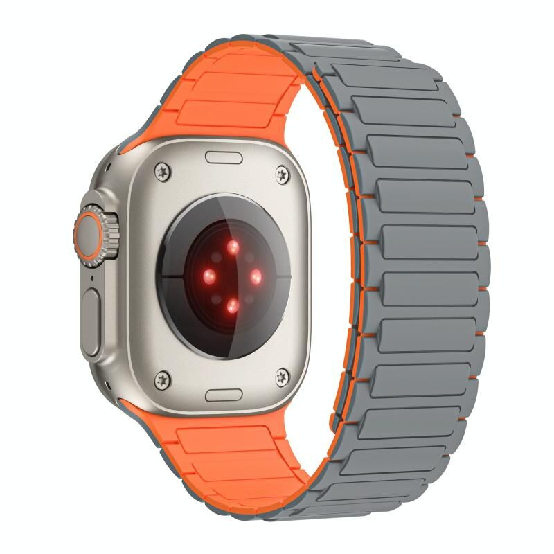 Για Apple Watch Series 3 38mm Μαγνητικό Λουρί Σιλικόνης (Γκρι Πορτοκαλί)
