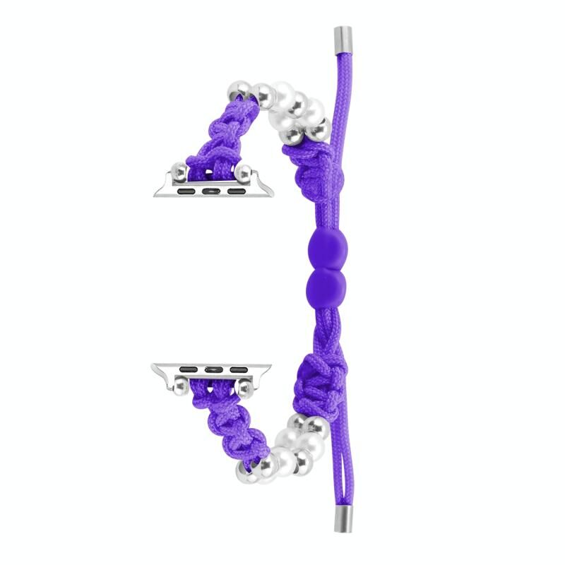 Για Apple Watch Series 3 38mm Λουρί Παρακορδίου με Χάντρες και Σχοινί, Πλεχτό (Μωβ)