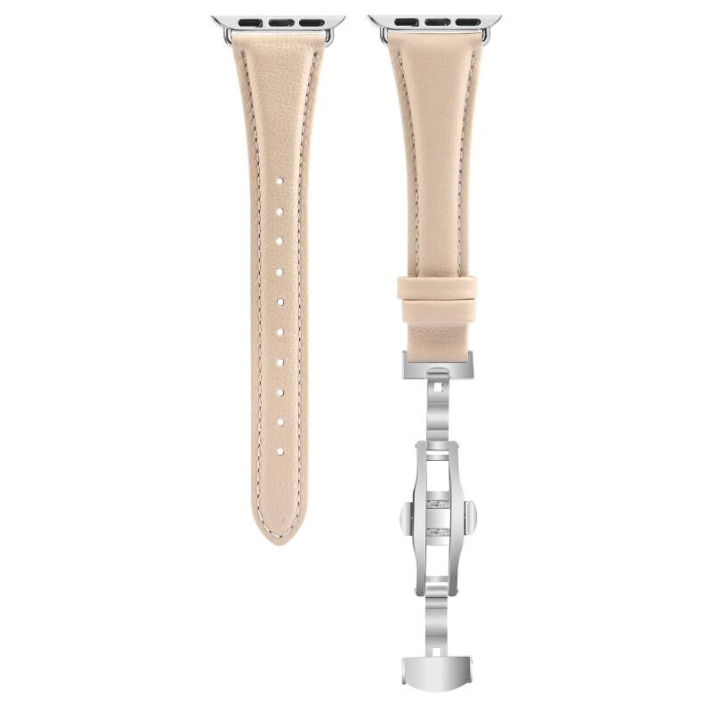 Για Apple Watch Series 3 38mm Απλό Δερμάτινο Λουράκι με Αγκράφα Πεταλούδας (Σκούρο Καφέ+Ασημί)