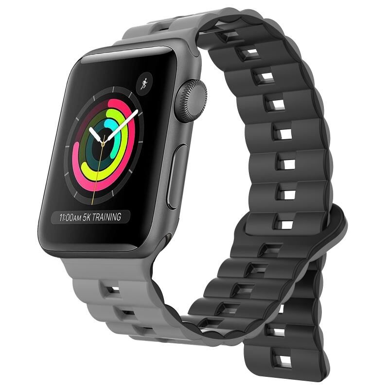 Για Apple Watch Series 3 38mm, Λουρί Σιλικόνης με Μαγνητικό Κούμπωμα Αντίστροφης Πόρπης, Δύο Χρωμάτων (Γκρι+Μαύρο)