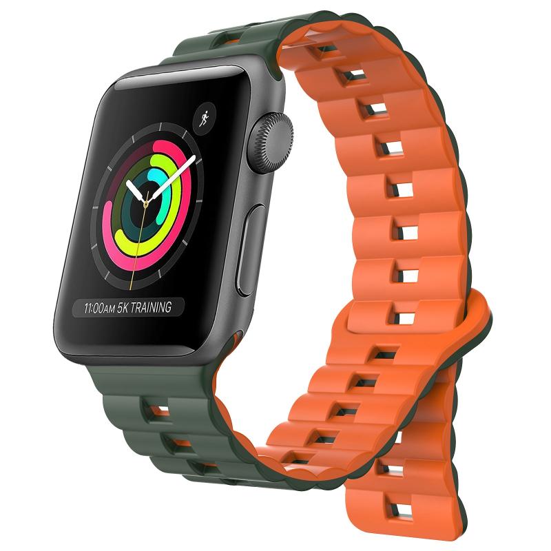 Για Apple Watch Series 3 38mm, Λουρί Σιλικόνης με Μαγνητικό Κούμπωμα Αντίστροφης Πόρπης, Δύο Χρωμάτων (Γκρι+Πορτοκαλί)