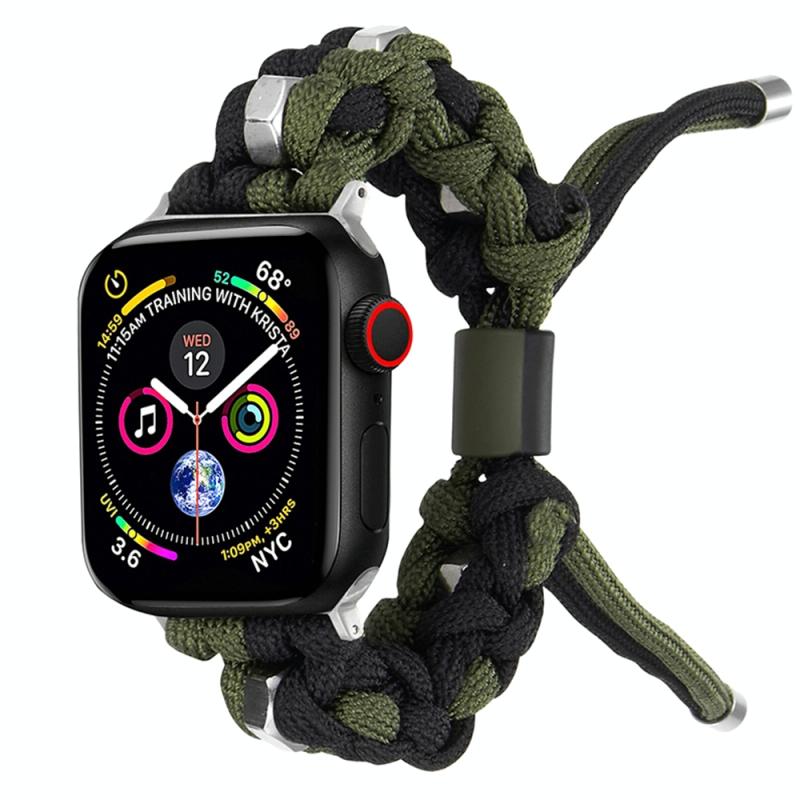 For Apple Watch Series 3 38mm Screw Nut Dual-Color Braided Paracord Watch Band(Black Green)
